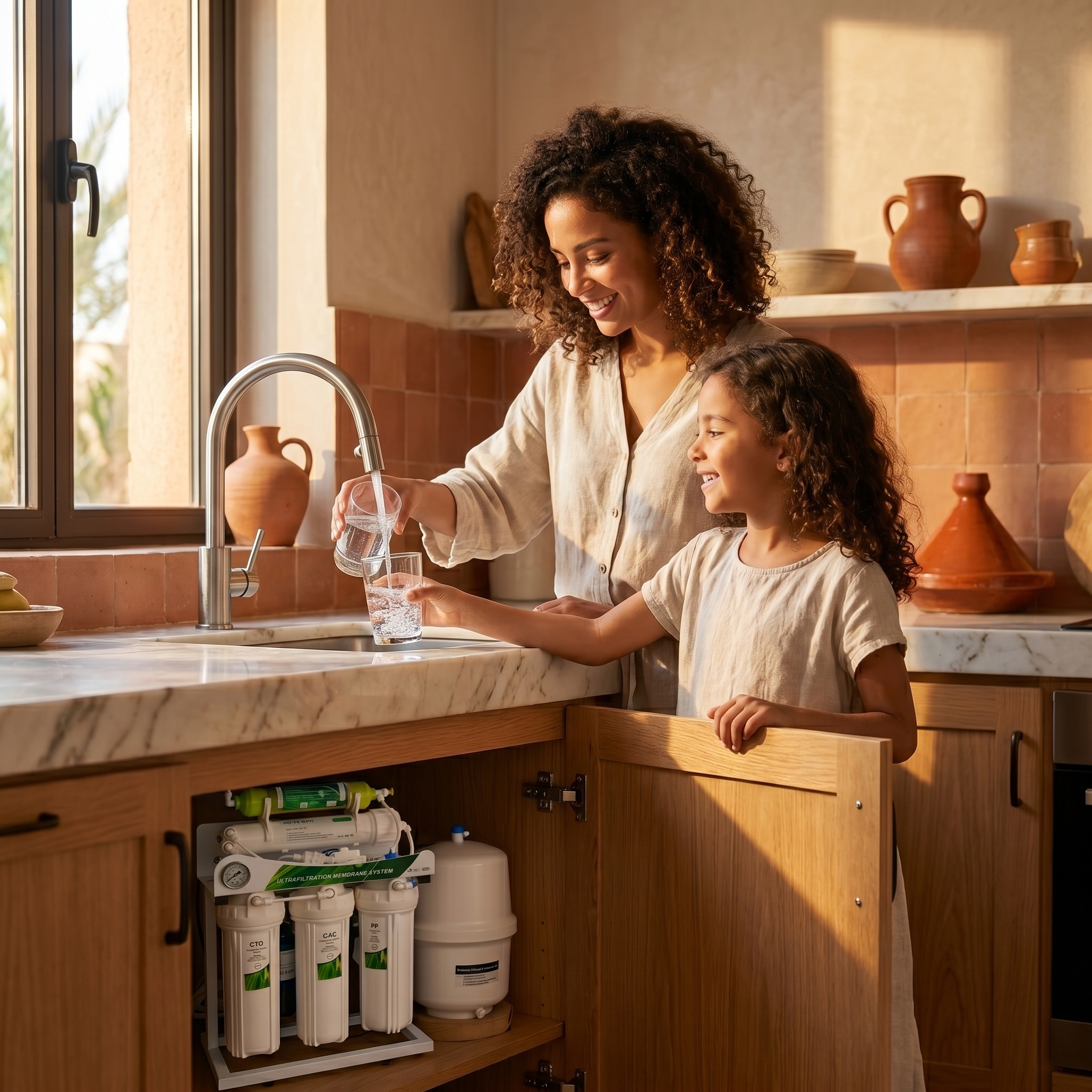 Oui. Le système 7 étapes est conçu pour les eaux marocaines dures. Élimine 99% du calcaire.
